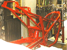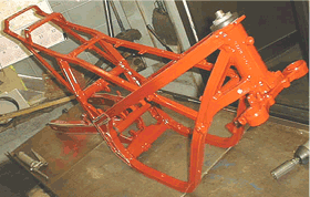 8月15日 塗装が出来上がってこないので一月以上レポートしませんでした。やっとあが ってきました。取り敢えずはフレームから組んでいきます。 以前から排気煙の多さが気になっていたんですが、今回思い切ってクランク シャフトセンターベアリング両端部のオイルシールを交換しました。 ちょっと予算オーバーですが、もう蒸気機関車なんて言わせないぞ。